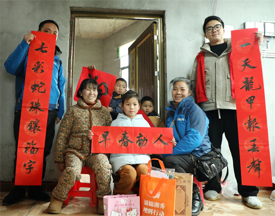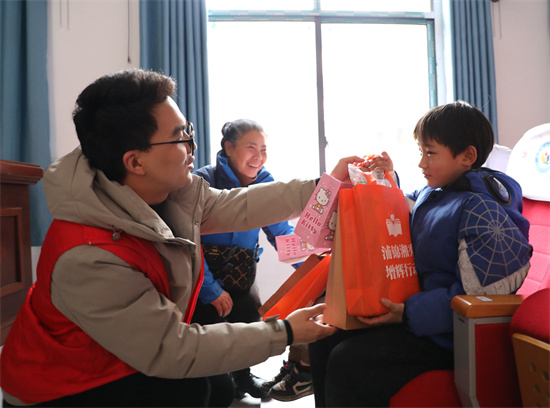 1月9日,愛(ài)心志愿者在湖南省保靖縣清水坪鎮(zhèn)黃連村走訪貧困學(xué)生,送去新年禮物。新春佳節(jié)臨近,上海浦錦愛(ài)心助學(xué)團(tuán)和該縣愛(ài)心企業(yè)秈泉食品責(zé)任公司的志愿者深入清水坪、比耳、復(fù)興等鄉(xiāng)鎮(zhèn),走訪貧困學(xué)生,送慰問(wèn)金、衣物和文體用品等新年禮物,讓山村孩子愉快度春節(jié)。(俞采華)