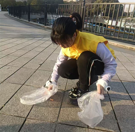 一組同學(xué)在通程美食街,看到隨處可見的煙頭、奶茶瓶,都快速拾到垃圾袋中,獲得了過往行人的紛紛點贊;另一組同學(xué)徘徊在通程廣場,廣場上曬太陽的人很多,垃圾也不少,同學(xué)們爭先恐后拾掇著,金色的陽光照在他們身上暖洋洋的,環(huán)保小衛(wèi)士們也用他們的方式回饋著對地球媽媽的愛。
