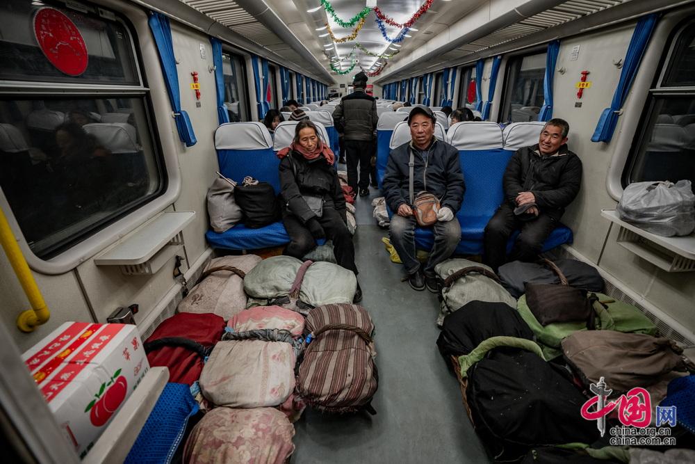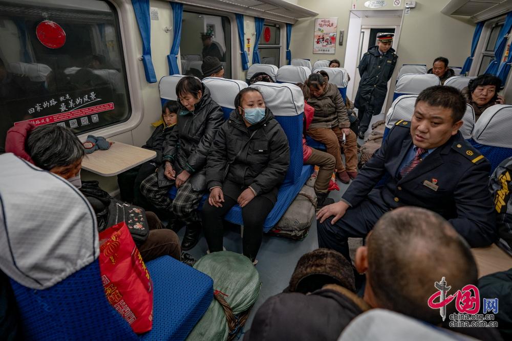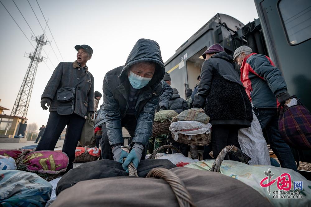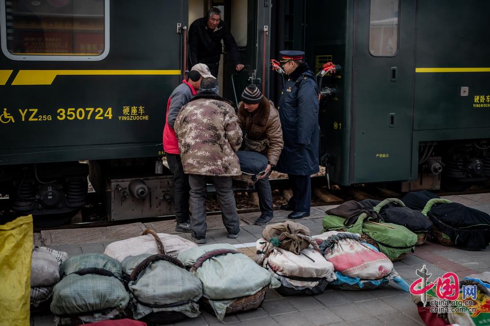 車站工作人員引導(dǎo)“大筐隊”有序上車。中國網(wǎng)記者 鄭亮攝