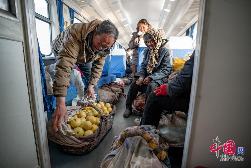 多年來,乘務(wù)員與鄉(xiāng)親們已經(jīng)建立了深厚的情誼,彼此如同家人。乘務(wù)員為鄉(xiāng)親們?nèi)找娓辉5纳罡械叫老?,鄉(xiāng)親們則對乘務(wù)組日益細(xì)致的服務(wù)充滿感激。一年四季,鄉(xiāng)親們挑著大筐乘坐火車進(jìn)城賣貨:春天的櫻桃、草莓;夏天的蔬菜、蘑菇;秋天的蘋果、葡萄;冬天的紅薯、核桃。只要是自家地里種的,都通過這趟列車運往承德市區(qū)售賣,而這些新鮮的農(nóng)產(chǎn)品也深受市民喜愛。