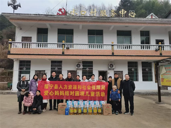 2025年 2月12日,綏寧縣人力資源和社會保障局婦委會組織“愛心媽媽”志愿服務(wù)隊深入該局結(jié)對幫扶的水口村和新哨村,開展“愛心媽媽結(jié)對困境兒童”活動,為16名困境兒童送去溫暖與關(guān)懷。