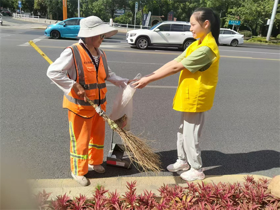 8月19日,十幾位小義工走上星沙街頭,太陽下熱浪撲面,小義工們汗水浸濕衣背,他們用實際行動傳遞關懷,在勞動中深刻體會到酷暑中室外工作的艱辛與奉獻的可貴,致敬這群默默守護在一線崗位的平民英雄們。“您辛苦了!請喝水。”小義工將一瓶瓶飲用水熱情地遞到正在高溫下辛勤工作的環(huán)衛(wèi)師傅、外賣小哥、園林工人和快遞員等戶外工作者手中,同時送上了一句溫馨問候。