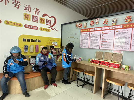 小李第一次走進(jìn)驛站時,還有些忐忑,但當(dāng)他看到里面溫馨的環(huán)境時,所有的顧慮都打消了。從那以后,這里便成了他的“暖心小家”。累了,進(jìn)來歇歇腳;餓了,進(jìn)來熱熱飯;手機(jī)沒電了,進(jìn)來充充電。這個“不打烊”的驛站,為像小李一樣的新就業(yè)群體提供了實實在在的便利。