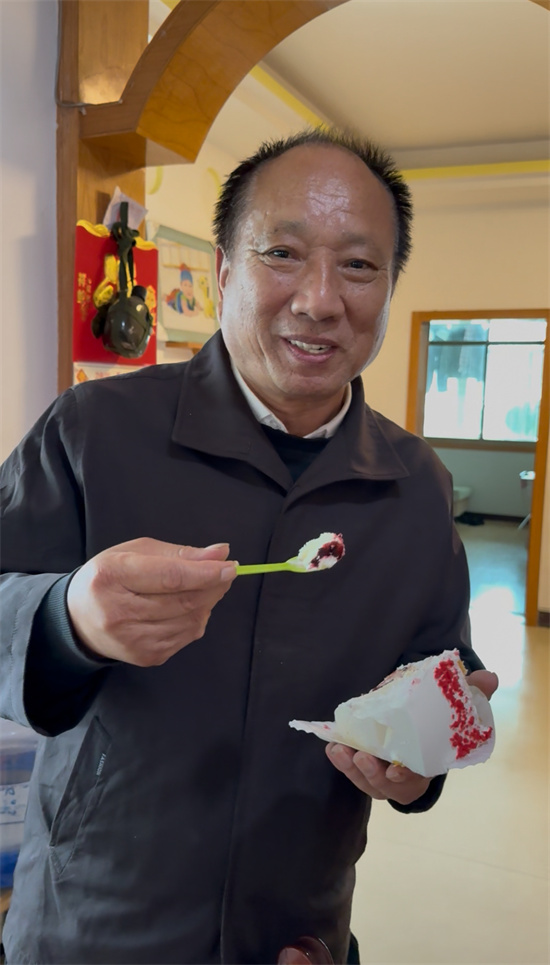 視頻接通的剎那,父女倆的眼眶瞬間濕潤,幸福的笑容卻不約而同地綻放在臉上。志愿者們齊聲唱響生日快樂歌,悠揚的歌聲里,一邊是周瑞生大爺滿臉欣慰的笑意,一邊是周萍英女士感動落淚的模樣。“謝謝幫幫團的同志們,圓了我和爸爸一起過生日的心愿,太暖心了!”周萍英在視頻中連連致謝,既反復(fù)叮囑父親注意身體、按時吃飯,更勇敢地說出了藏在心底的歉意。周瑞生大爺緊緊握著志愿者的手,激動得聲音微微顫抖:“今天真是太開心了,不僅有人陪我吃飯,還能和女兒‘一起’過生日,感覺孩子們都回到了身邊!”