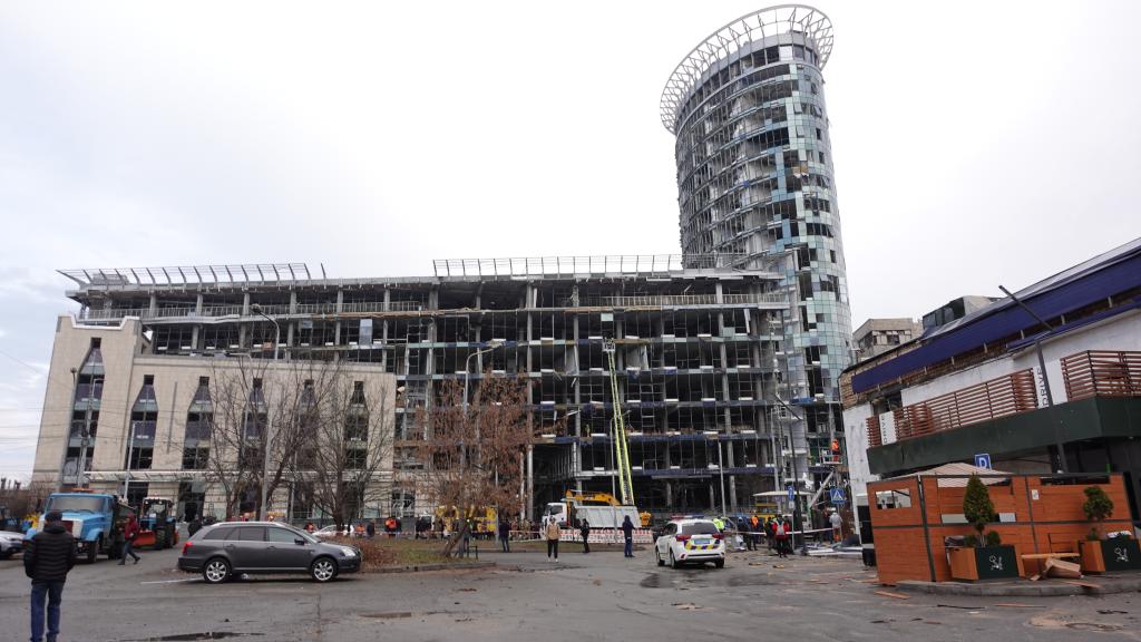 這是2025年1月18日拍攝的烏克蘭首都基輔市舍甫琴科夫斯基區(qū)一棟遭“伊斯坎德爾”導(dǎo)彈襲擊的辦公大樓。新華社記者李東旭攝