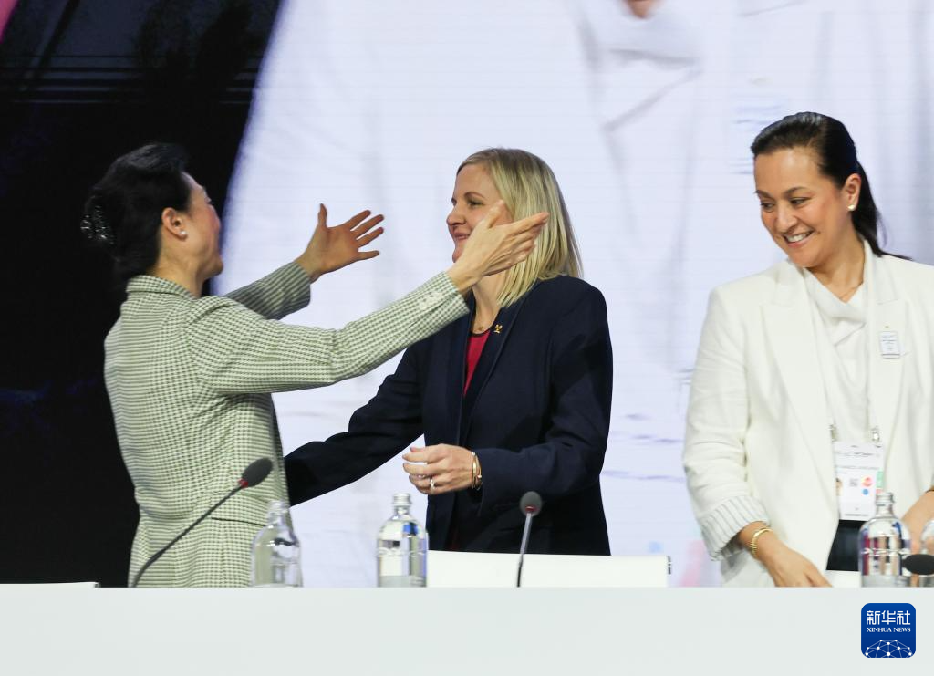 3月20日,國(guó)際奧委會(huì)執(zhí)委李玲蔚(左)和國(guó)際奧委會(huì)新一任主席考文垂(中)擁抱。