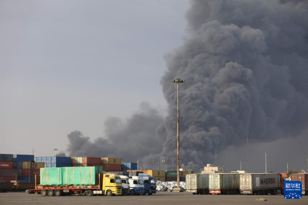4月26日,伊朗沙希德拉賈伊港的爆炸現(xiàn)場冒出濃煙。