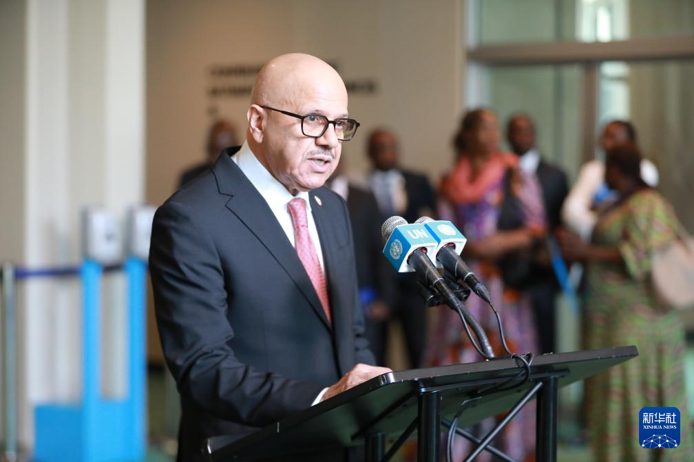 6月3日,在位于紐約的聯(lián)合國(guó)總部,巴林外交大臣扎耶尼在巴林當(dāng)選聯(lián)合國(guó)安理會(huì)非常任理事國(guó)后講話。