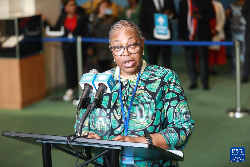6月3日,在位于紐約的聯(lián)合國(guó)總部,剛果(金)外長(zhǎng)泰蕾茲·卡伊寬巴·瓦格納在剛果(金)當(dāng)選聯(lián)合國(guó)安理會(huì)非常任理事國(guó)后講話。