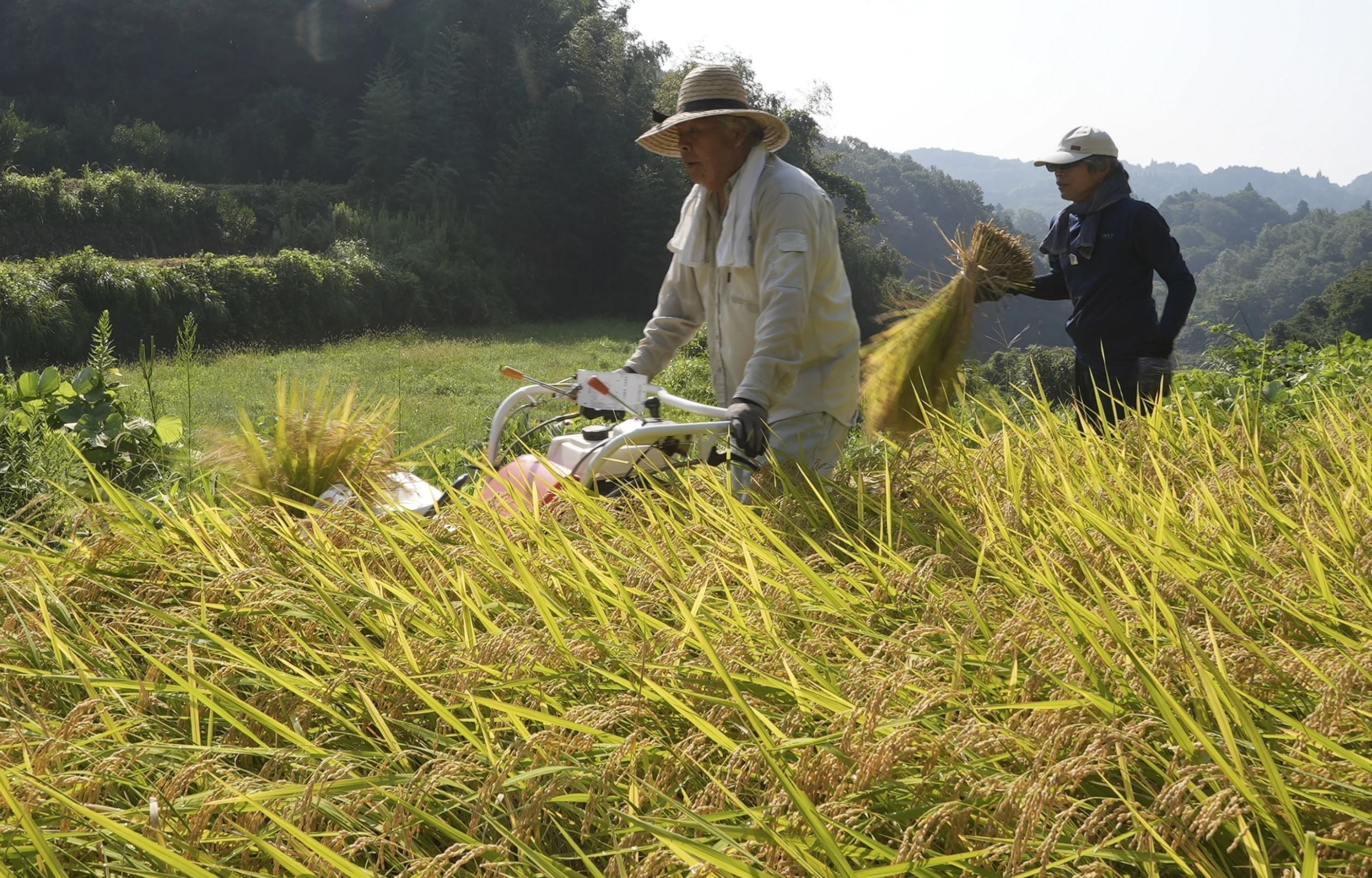 △日本農民在稻田里用收割機工作(圖自美聯(lián)社)