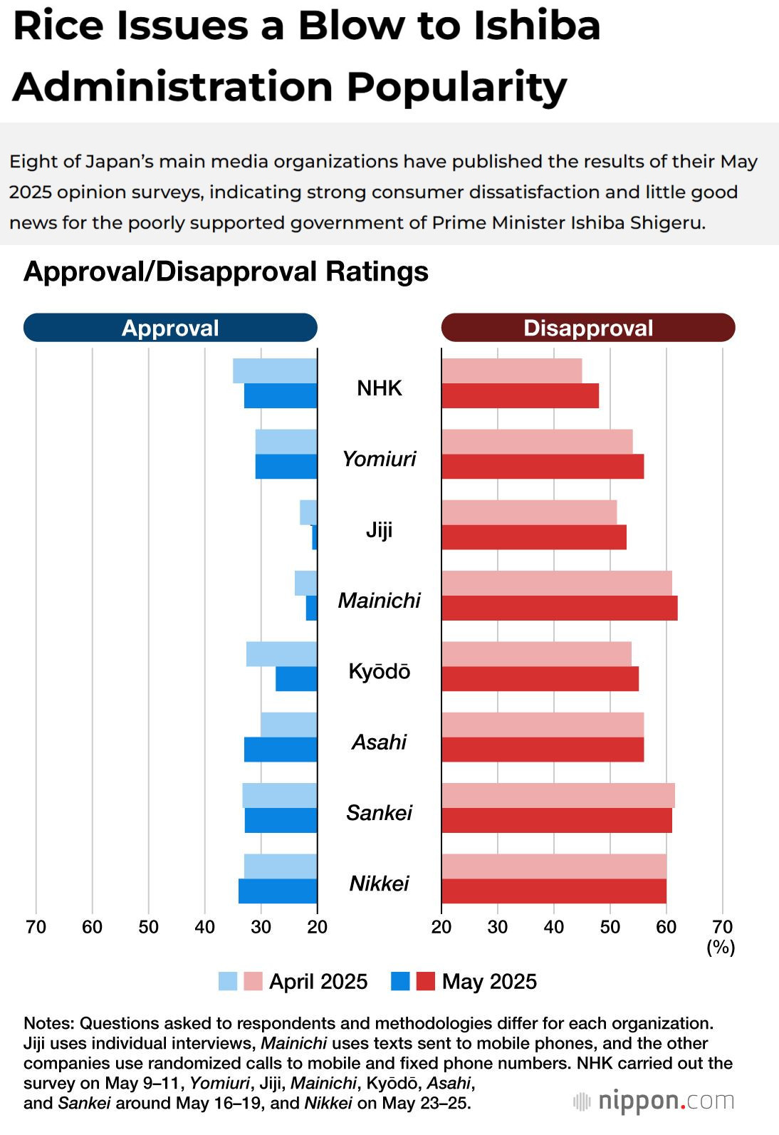 如果米價不能很快降下來,日本民眾的不滿情緒可能會進一步發(fā)酵,嚴重影響到7月底參議院選舉的自民黨選情。一旦現(xiàn)在聯(lián)合執(zhí)政的自民黨和公明黨在這次選舉中失去過半數(shù)議席,石破茂大概率要引咎辭職。