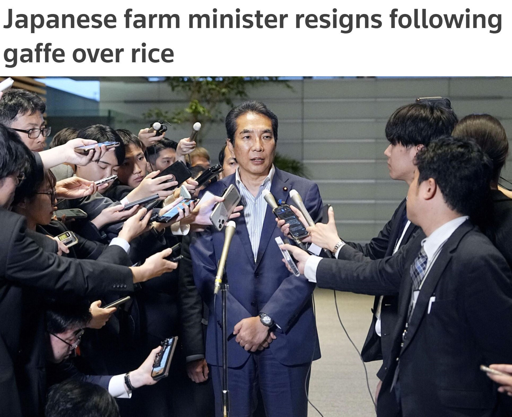 這番言論在日本全國引發(fā)軒然大波。為平息民憤,日本首相石破茂于5月21日接受江藤拓的辭職,指由小泉進次郎接任農林水產(chǎn)大臣。