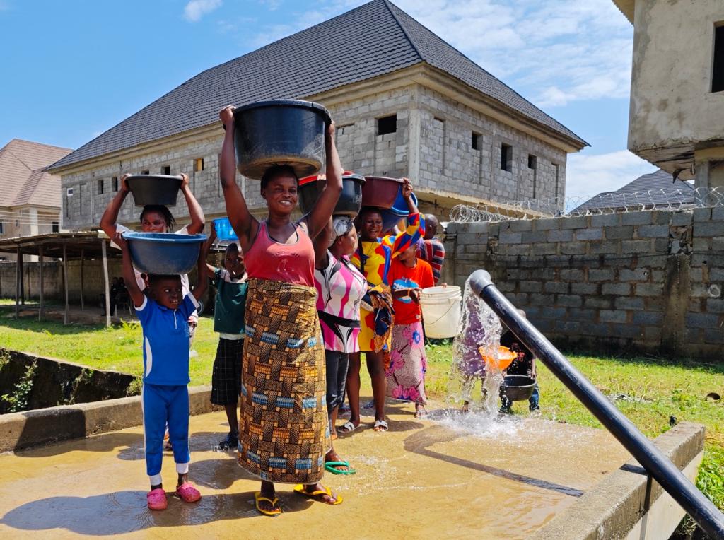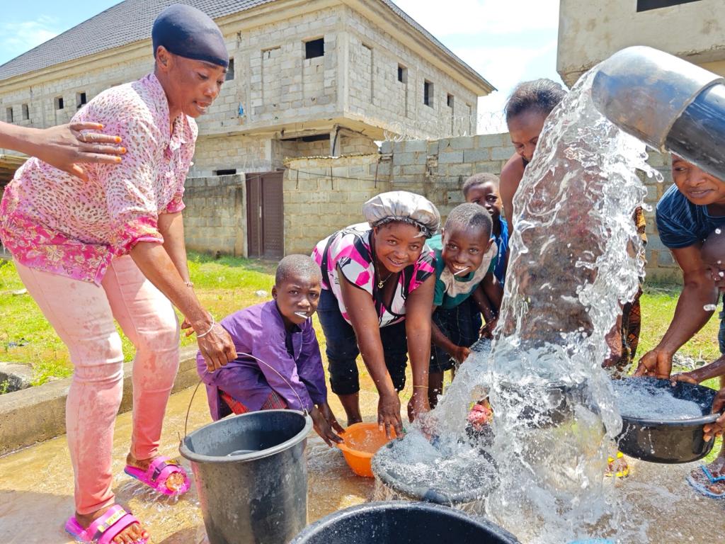 2024年10月9日,尼日利亞阿布賈居民在阿布賈大供水項目中體驗試取水。新華社發(fā)(中地海外尼日利亞有限公司供圖)