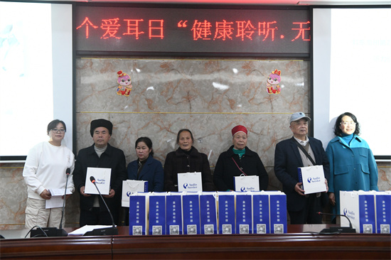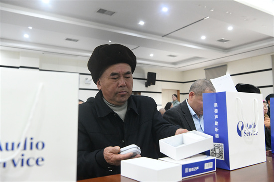 2025年3月3日,在貴州省凱里市的黔東南州殘聯(lián)第二十六個(gè)全國(guó)愛耳日宣傳教育活動(dòng)捐贈(zèng)現(xiàn)場(chǎng),一愛心企業(yè)向聽障人士捐贈(zèng)助聽器。(楊仁海攝)