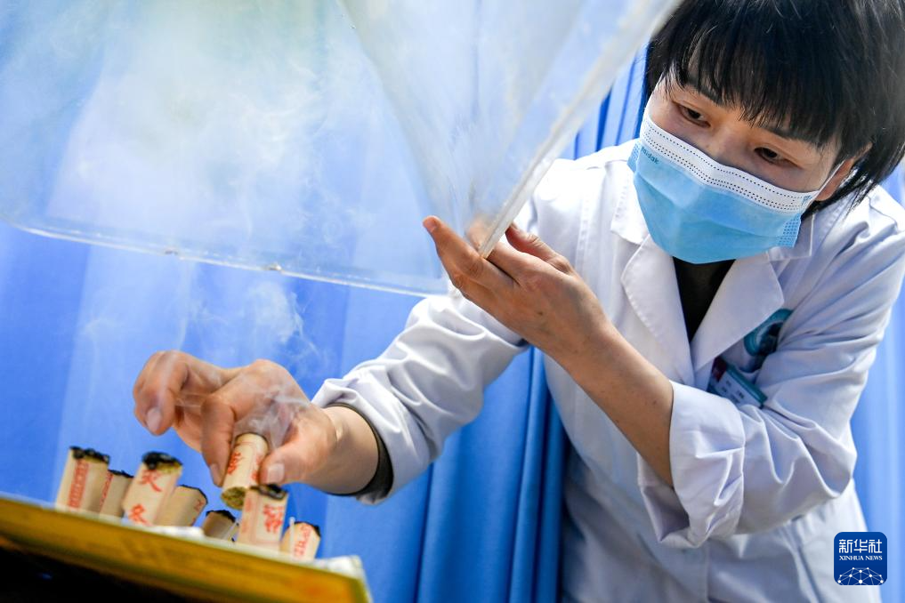 3月7日,雁塔區(qū)長延堡社區(qū)衛(wèi)生服務(wù)中心中醫(yī)館的醫(yī)生對患者進行溫灸治療。