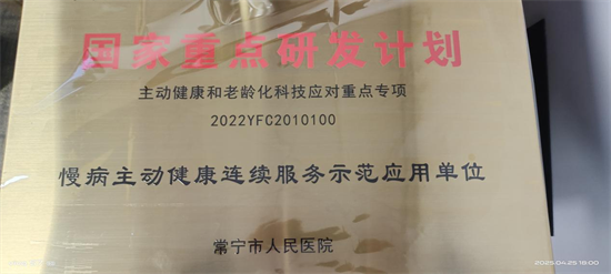 憑借在慢病防控領(lǐng)域的科研實力與臨床資源優(yōu)勢,常寧市人民醫(yī)院作為首批參與單位被授予“慢病主動健康連續(xù)服務(wù)示范應(yīng)用單位”稱號,標(biāo)志著醫(yī)院在國家級科研項目中的示范引領(lǐng)作用獲得高度認(rèn)可。