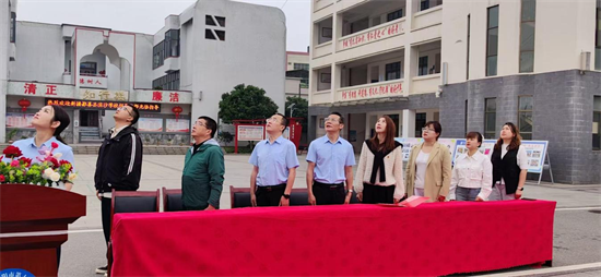 上午8時,濱沙學(xué)校代表團(tuán)與十五中師生共同參加莊嚴(yán)的升旗儀式,大家齊唱國歌,目光堅(jiān)定。