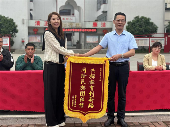 活動中,熱孜彎古力校長向十五中贈送錦旗“共探教育創(chuàng)新路, 同繪民族團(tuán)結(jié)情”,象征兩地教育協(xié)作邁向新篇章。