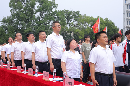 《啟程》的歌聲緩緩響起,學(xué)生們有序入場。在雄壯的國歌聲中,五星紅旗冉冉而升,全體肅立。這一刻,家國情懷在心中激蕩。