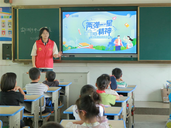 中國新報(bào)(通訊員 王姣美 陳頌 李舒佳)近日,珠暉區(qū)酃湖鄉(xiāng)團(tuán)委聯(lián)合南華大學(xué)土木工程學(xué)院青年志愿者來到酃湖鄉(xiāng)中心學(xué)校開展“兩彈一星”精神宣講暨“砼行科普,筑夢未來”主題科普實(shí)踐活動,8名青年志愿者開展宣講,60余名學(xué)生參與活動。