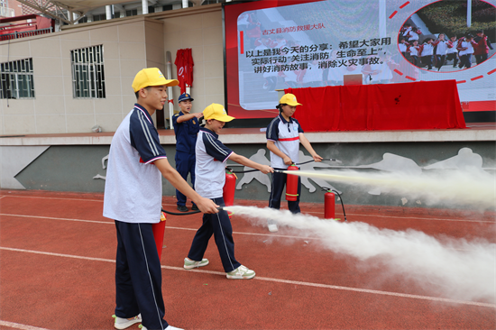 活動(dòng)亮點(diǎn)之一是“滅火實(shí)操體驗(yàn)”環(huán)節(jié)。在消防隊(duì)員的專業(yè)指導(dǎo)下,師生們認(rèn)真學(xué)習(xí)干粉滅火器的使用方法,并分組進(jìn)行了現(xiàn)場(chǎng)滅火演練。同學(xué)們踴躍參與,親身體驗(yàn)撲滅“初期火災(zāi)”的全過程,不僅掌握了操作技巧,更增強(qiáng)了面對(duì)突發(fā)火情時(shí)的應(yīng)對(duì)信心。此外,夏教官還現(xiàn)場(chǎng)演示了消防水帶等器材的使用方法,講解了高層緩降器、疏散通道標(biāo)識(shí)識(shí)別等實(shí)用逃生技巧,進(jìn)一步提升了師生的消防綜合素養(yǎng)。