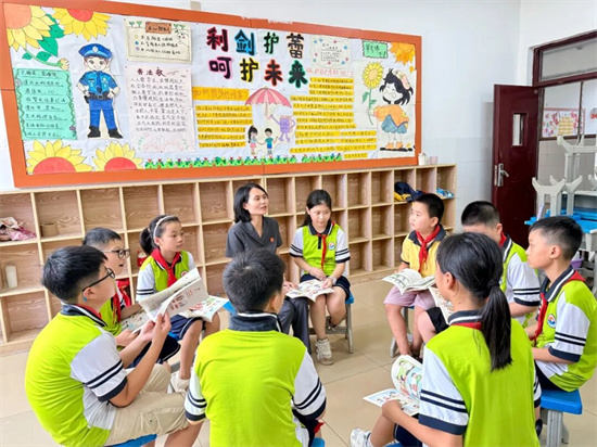 課堂不再是單向灌輸,而是充滿了思維的碰撞和歡樂的互動。緊隨其后的法律知識搶答環(huán)節(jié)將活動推向高潮。“發(fā)現(xiàn)同伴落水該怎么辦?”“別人觸碰讓你感到不舒服應(yīng)該怎么做?”……一個個緊扣主題、貼近生活的問題拋出,孩子們爭先恐后地舉手搶答,在緊張激烈的比拼中鞏固了剛學(xué)到的法律和安全知識,清脆的回答聲和歡呼聲充滿了整個教室。