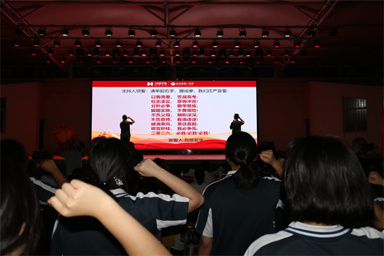 隨后,全體高三學子在主持人張子涵、魯旭彬的帶領下莊嚴宣誓,齊誦《高三啟航誓詞》:“以我青春,誓戰(zhàn)高考;壯志凌云,豪情沖霄!”鏗鏘有力的誓言響徹全場,表達了學生們迎難而上、志在必得的決心。宣誓結(jié)束時,全體師生與家長代表齊擊掌三聲,寓意“志·行·成”的堅定信念與行動承諾。