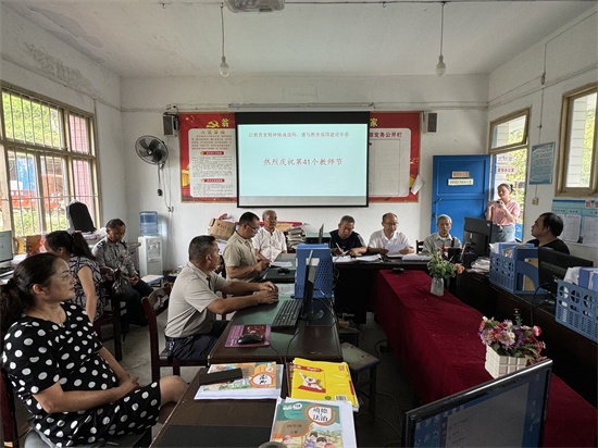 當(dāng)天下午,翁牙小學(xué)教師集體辦公室里氣氛熱烈而祥和,19名退休教師及在職教師歡聚一堂,以集中學(xué)習(xí)觀看回信內(nèi)容及新聞聯(lián)播,并召開座談會的形式共度教師節(jié)。