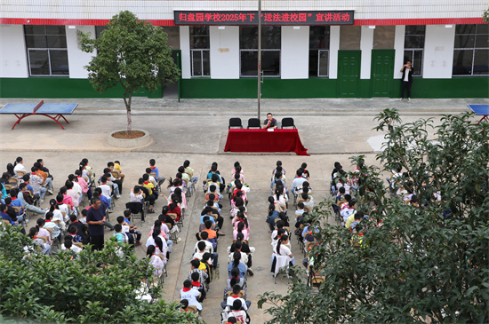 9月23日,在湖南省漣源市橋頭河鎮(zhèn)歸盤園學(xué)校,漣源市法院的法官在給孩子們授課。