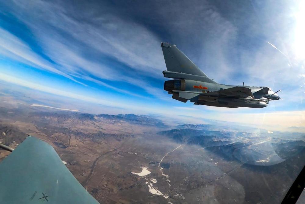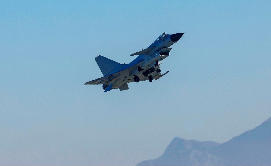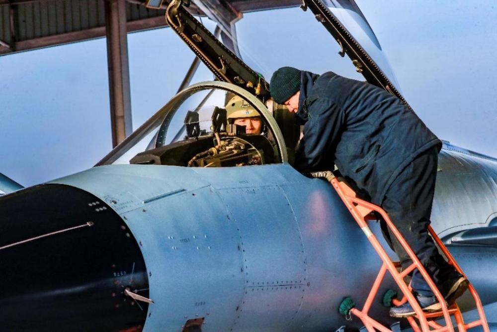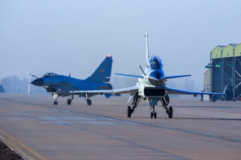 保障車輛往來穿梭,機(jī)務(wù)官兵細(xì)致操作。隨著塔臺(tái)指令下達(dá),戰(zhàn)機(jī)駛向起飛線。“請示起飛。”“計(jì)時(shí)加力起飛。”戰(zhàn)機(jī)呼嘯升空,打破冬日的沉寂。