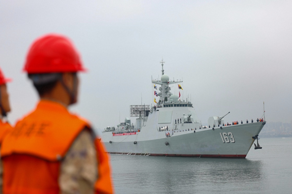 中國(guó)海軍第46批護(hù)航編隊(duì)焦作艦緩緩靠泊廣東湛江某軍港(2025年1月24日攝)。新華社發(fā)(姜海濤 攝)