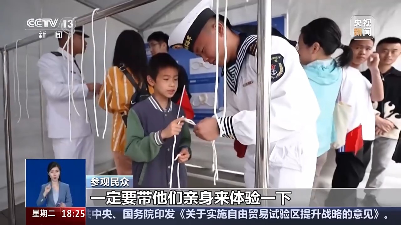 參觀民眾:我覺得國防教育從娃娃抓起,作為家長我們除了日常給他科普一些海軍知識,國防知識外,像這樣的活動一定要帶他們親身來體驗(yàn)一下,海軍節(jié)開放日活動的體驗(yàn)感、參與感真的挺好的。