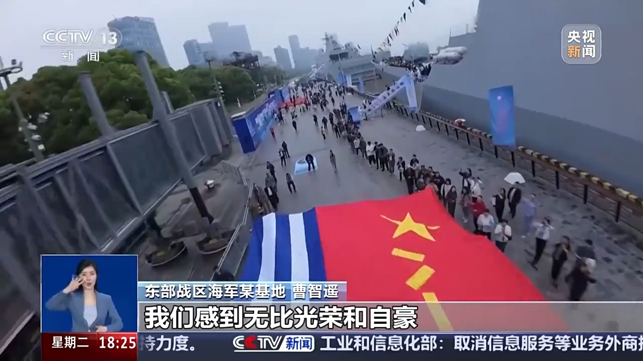 參觀民眾:在這個(gè)現(xiàn)場,興奮的心情難以言表。我這個(gè)老海軍,在部隊(duì)也服役了28年,我感到很振奮,對比我們以前海軍的裝備,現(xiàn)在真是我們祖國太強(qiáng)大了,我們海軍太強(qiáng)大了,為他們高興,為他們點(diǎn)贊。