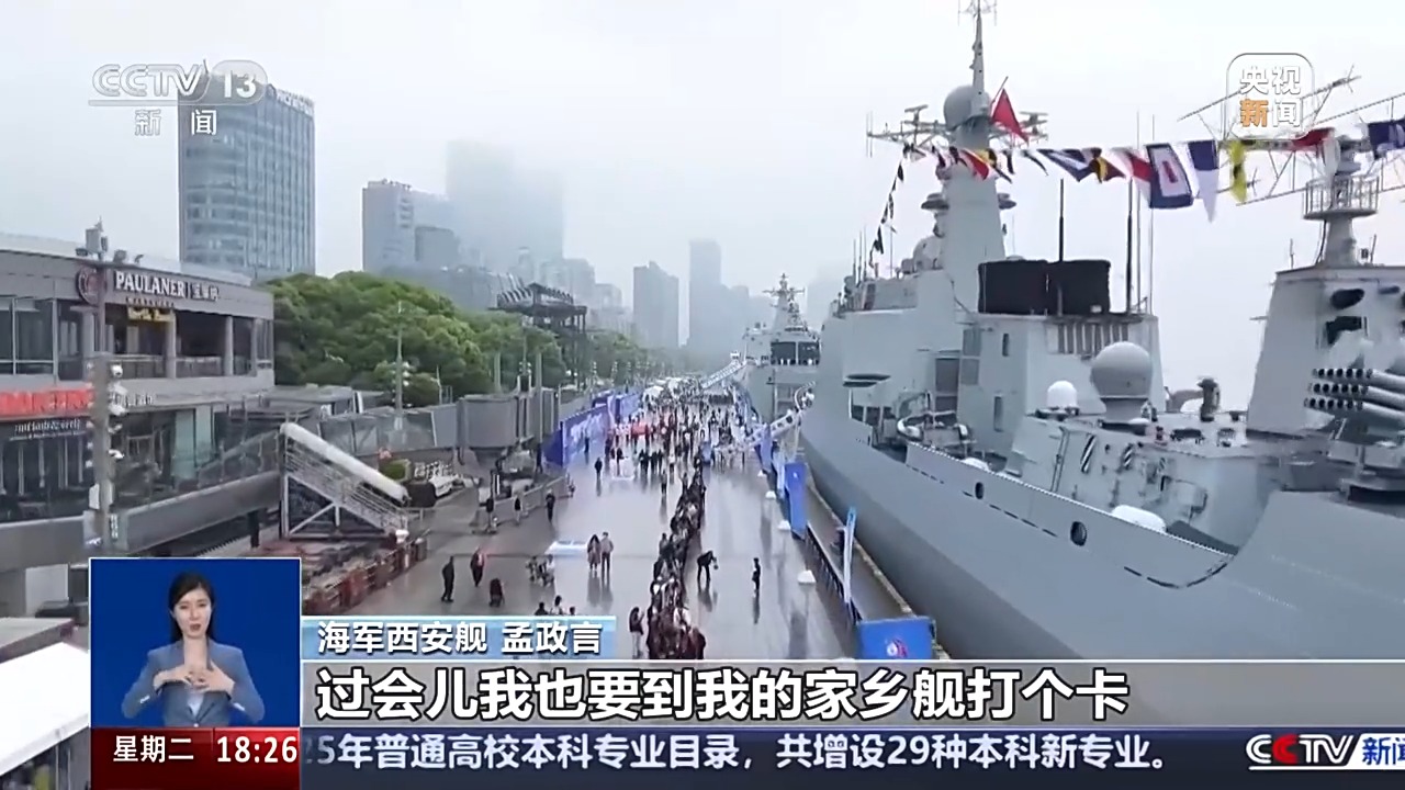 海軍西安艦 孟政言:這是我們西安艦第一次在上海參加艦艇開放活動。我是臨沂人,沂蒙山艦是我的家鄉(xiāng)艦。現(xiàn)在兩艘艦艇都靠泊在上海,共同慶祝人民海軍成立76周年,對我來說這個(gè)海軍節(jié)格外有紀(jì)念意義。聽說沂蒙山艦也是第一次在這里開放,機(jī)會難得,過會兒我也要去家鄉(xiāng)艦打個(gè)卡。