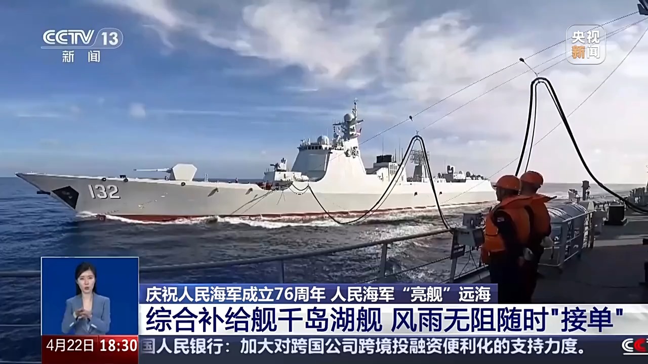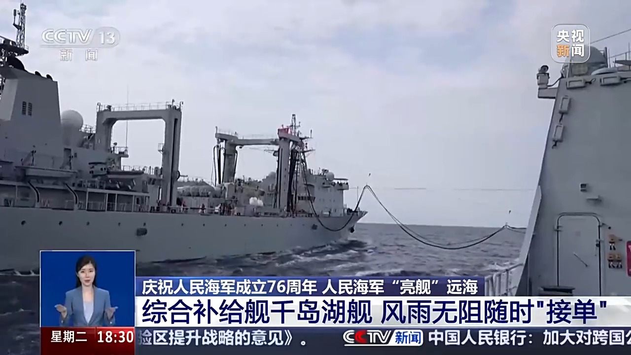 “亮艦”遠(yuǎn)海的還有綜合補(bǔ)給艦千島湖艦 。“兵馬未動,糧草先行”,一次次演訓(xùn)任務(wù)成功的背后離不開有力的后裝保障。綜合補(bǔ)給艦是專門承擔(dān)海上補(bǔ)給任務(wù)的海軍作戰(zhàn)支援艦艇,它猶如一座伴隨保障的海上移動倉庫,默默為艦艇編隊(duì)提供全方位后勤保障,支撐編隊(duì)勇闖大洋,被網(wǎng)友親切稱為“海上奶媽”。“遠(yuǎn)洋補(bǔ)給標(biāo)兵艦”千島湖艦就是其中一員,服役21年來,像外賣員一樣,風(fēng)雨無阻,隨時(shí)接受各種“點(diǎn)單”。