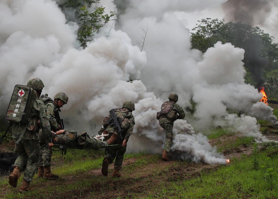 “前線”交戰(zhàn)正酣,“傷員”不斷增多,“收到上級來電,前方有‘傷員’滯留!”接到指揮組下達(dá)的最新命令,“準(zhǔn)軍醫(yī)”們再次背上背囊,一個(gè)個(gè)身影迅速沖入硝煙,一起奔向前方的戰(zhàn)場。(王俊康、李鑫、羅楊)