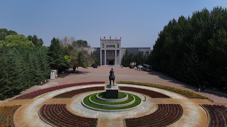 6月25日拍攝的泰來縣江橋抗戰(zhàn)紀(jì)念館外景(無人機(jī)航拍)。新華社記者 張啟明 攝
