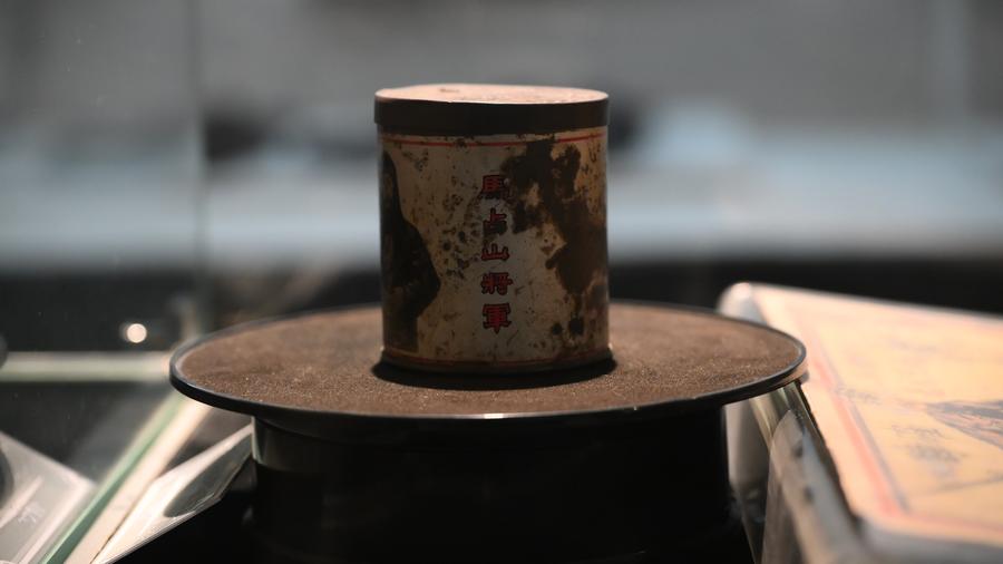 泰來縣江橋抗戰(zhàn)紀(jì)念館中展出的馬占山牌香煙煙盒(6月25日攝)。新華社記者 張啟明 攝