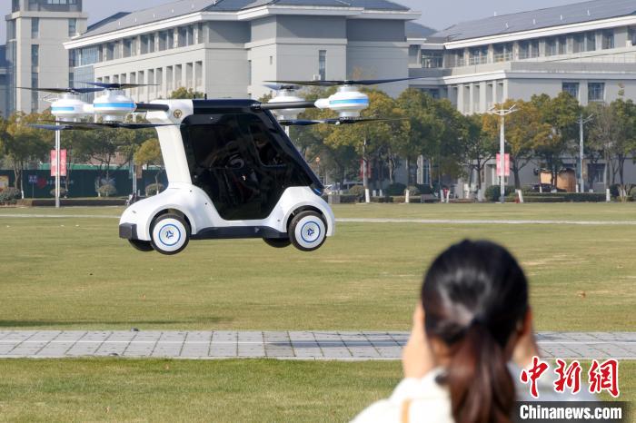 1月1日,江蘇南京,由東南大學(xué)科研團(tuán)隊自主研發(fā)的國內(nèi)首輛分布式電驅(qū)動飛行汽車“東大·鯤鵬1號”驚艷亮相。據(jù)了解,該飛行汽車技術(shù)源于東南大學(xué)機(jī)械工程學(xué)院車輛工程系與江蘇省智能電動運載裝備工程研究中心,集多項創(chuàng)新技術(shù)于一身。圖為“東大·鯤鵬1號”飛行汽車飛行。中新社記者 泱波 攝