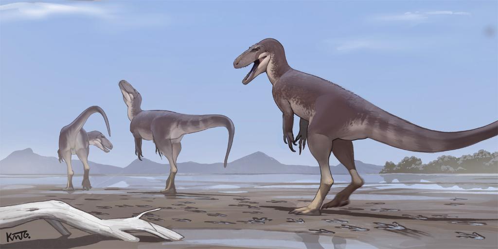 圖為烏蘭鎮(zhèn)足跡點的恐龍造跡者復原圖(受訪者提供)