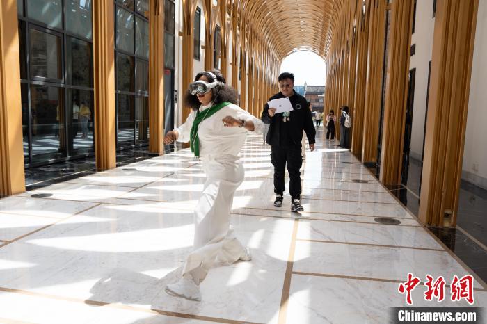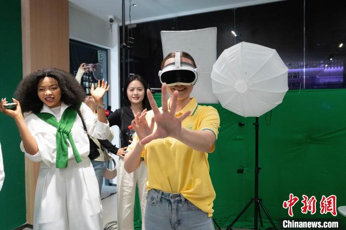 5月10日,尼日利亞留學(xué)生王倩戴上VR眼鏡開啟“探險(xiǎn)之旅”。中新社記者 吳君毅