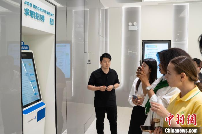 5月10日,中外青年了解求職機(jī)。中新社記者 吳君毅