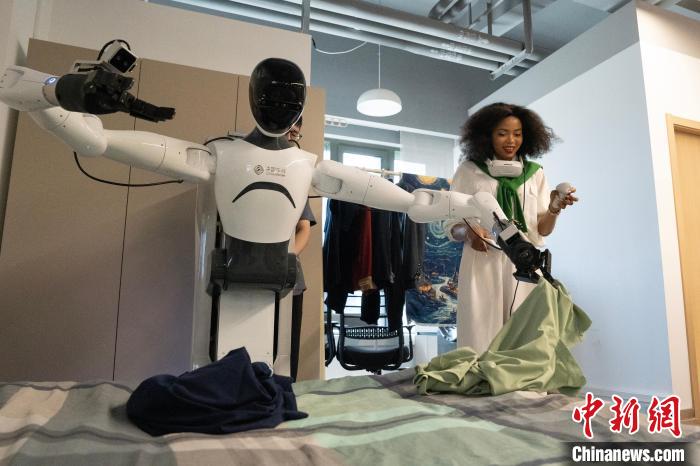 5月10日,尼日利亞留學(xué)生王倩使用機(jī)器人進(jìn)行收納。中新社記者 吳君毅