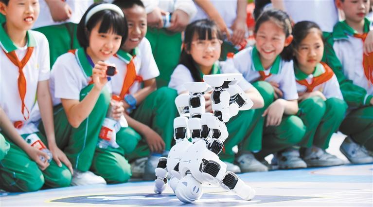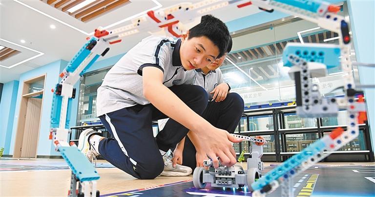 5月27日,重慶市鳳鳴山中學(xué)學(xué)生在科技創(chuàng)新館進(jìn)行機(jī)器人編程實(shí)踐。