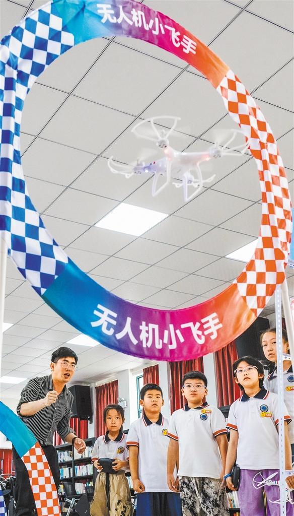 5月27日,安徽省蕪湖市孫村鎮(zhèn)中心小學(xué),教師在教授無(wú)人機(jī)飛行技術(shù)。