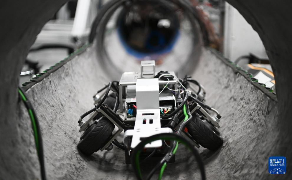 6月25日,在深圳的廣東省具身智能機器人創(chuàng)新中心拍攝的管道檢測機器人。