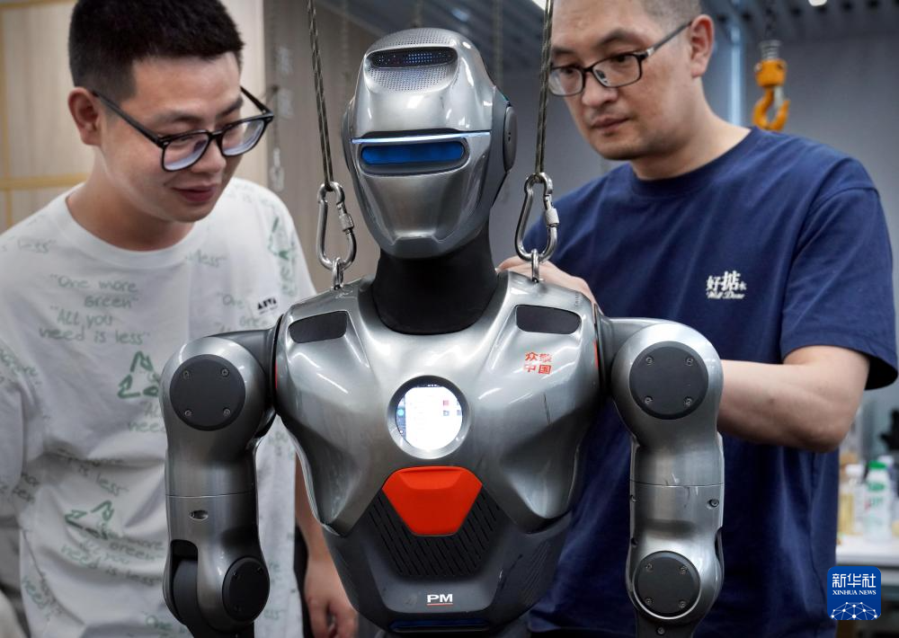 6月25日,深圳市眾擎機器人科技有限公司的工作人員在調(diào)試人形機器人。