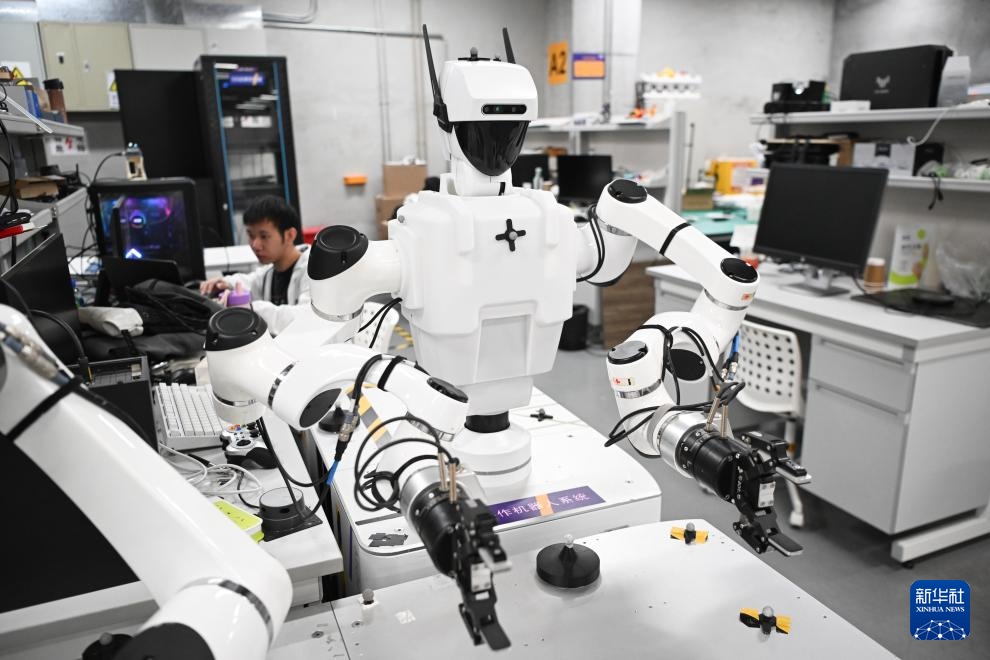 這是6月25日,在深圳的廣東省具身智能機器人創(chuàng)新中心拍攝的雙臂協(xié)作機器人系統(tǒng)。