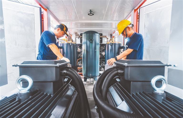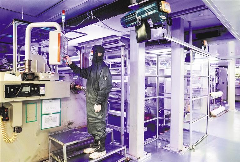7月31日,技術(shù)人員在位于金山區(qū)碳谷綠灣產(chǎn)業(yè)園內(nèi)的凱鑫森(上海)功能性薄膜產(chǎn)業(yè)股份有限公司調(diào)試設(shè)備。