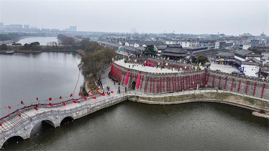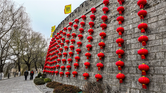 2025年2月23日,游客在安徽省淮南市壽縣古城墻游玩。